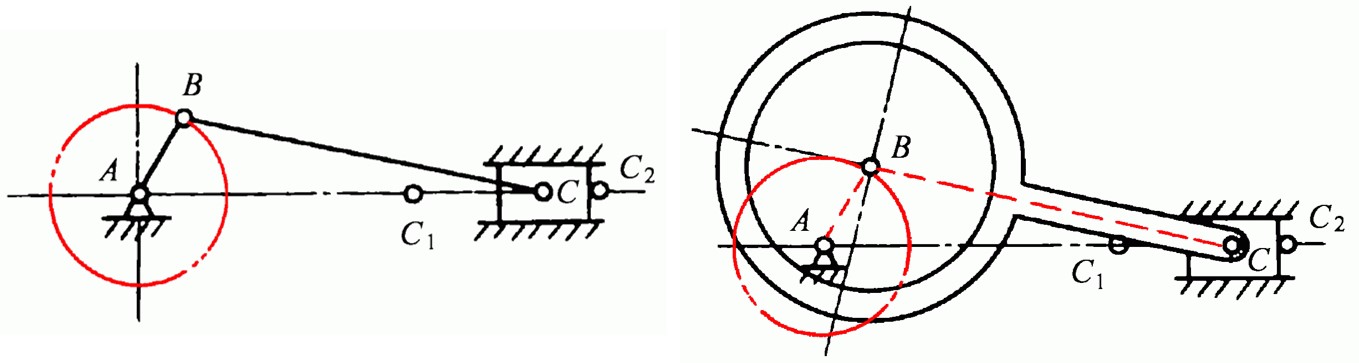 - 对于杆长过短时, 使用偏心圆代替杆 (注意分析自由度时应使用连杆替换偏心圆)