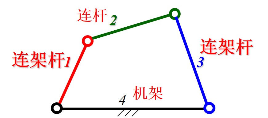 - 固定的杆 (通常为两固定铰链的连线) 为机架