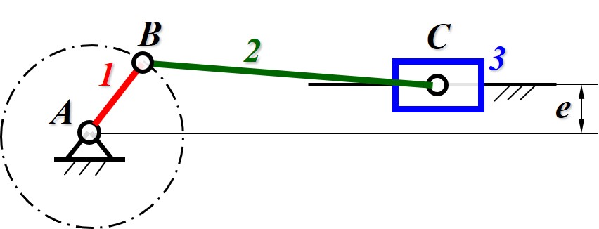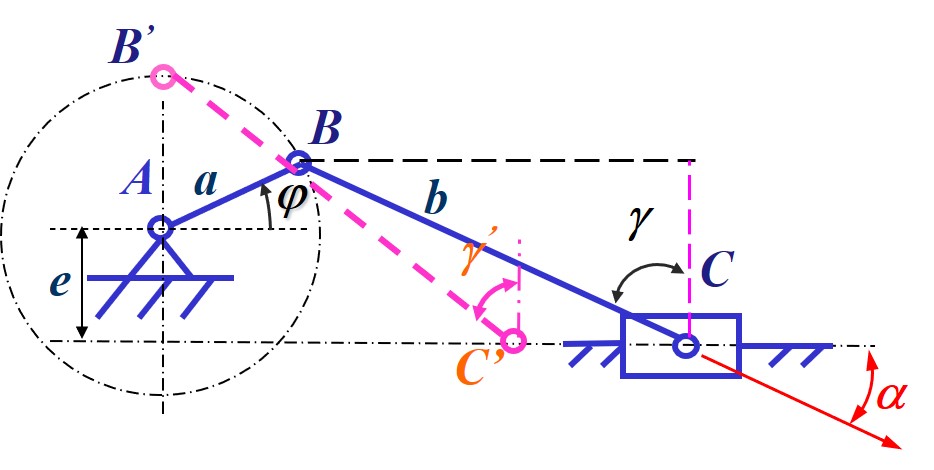 - 定义曲柄长 , 导杆偏置 , 曲柄与摆杆铰链距离 , 假设轨道无限长
