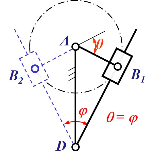 - 做出辅助圆后, 曲柄铰链 可以是圆上任意一点, 具体根据额外的约束条件确定