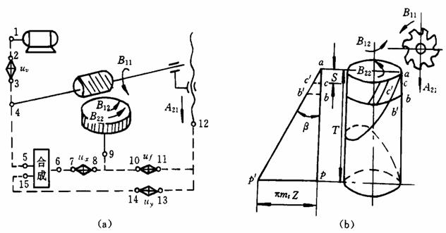 属于内联系传动链 (传动比由斜齿轮的螺旋角 决定)