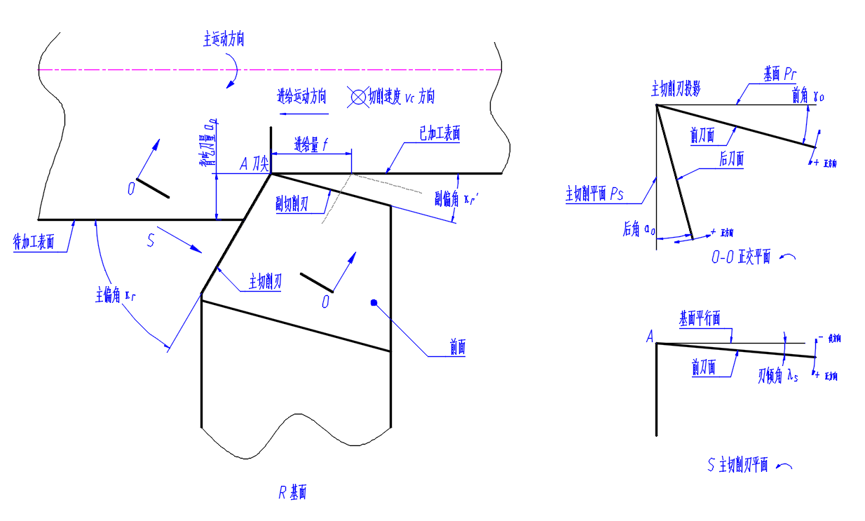 后面与主切削平面的夹角, 在工作正交平面中测量 - 切削用量 切削时各运动参数的总称, 包括三个方面 P60, P16, P10