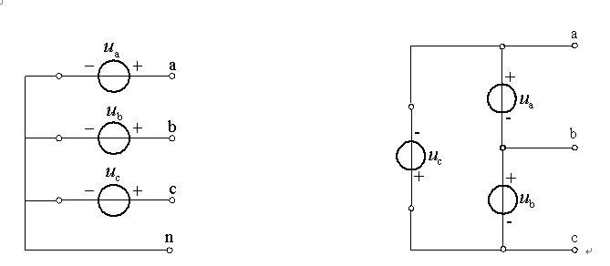 - 三角形联结中, 电压源正负极首尾相接, 按顺时针顺序排列