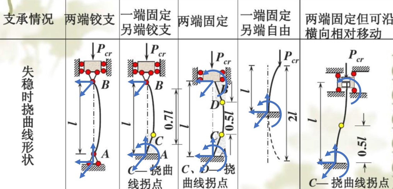 - 压杆稳定中, 受压端不能有压力方向的约束力, 否则压力在受压端即被抵消, 不存在压力