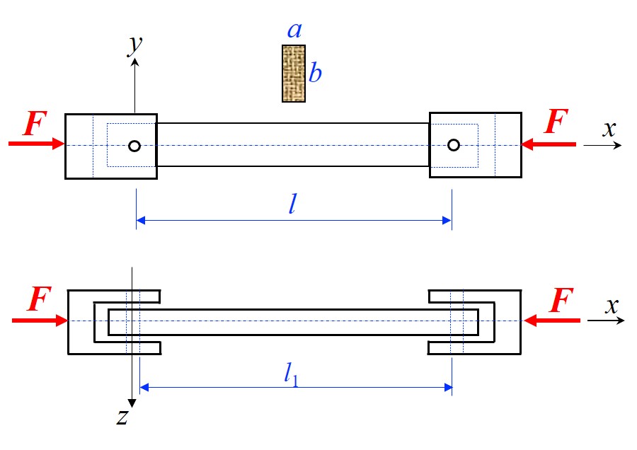 - 当压感在 y 轴方向发生弯曲时, 属于双球铰约束, 长度从铰圆心开始计, 因此 μ=1,I=Iz=ab3/12L=l