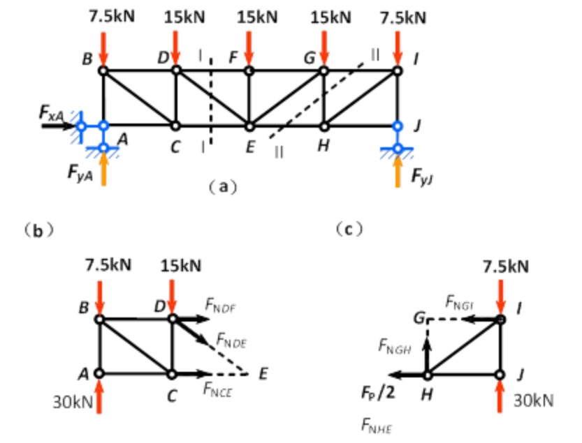 - 尽量一次仅截出三个未知量, 保证三个平衡方程可解