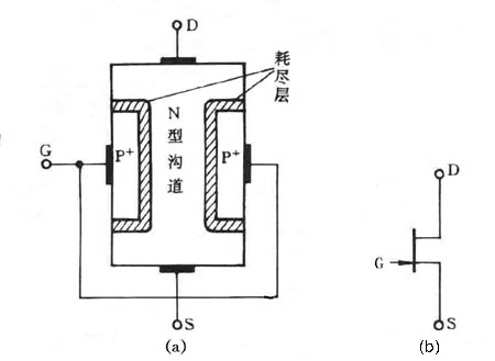 具有 N 沟道与 P 沟道两种结构, 两种结构所有元素, 极性和电流相反 (标志中 P(突块) 指向 N(沟槽))